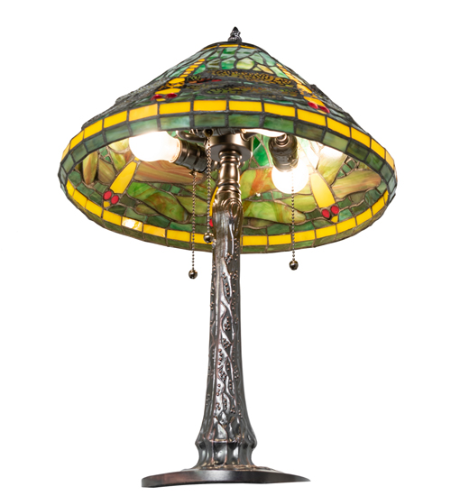 The Tiffany Dragonfly Table Lamp captures the enduring magic of one of Tiffany Studios’ most cherished designs—the graceful dragonfly in flight. Standing 22 inches tall, this stunning reproduction draws inspiration from the iconic Hanging Head Dragonfly lamp, celebrated for its movement, depth, and exquisite color balance.